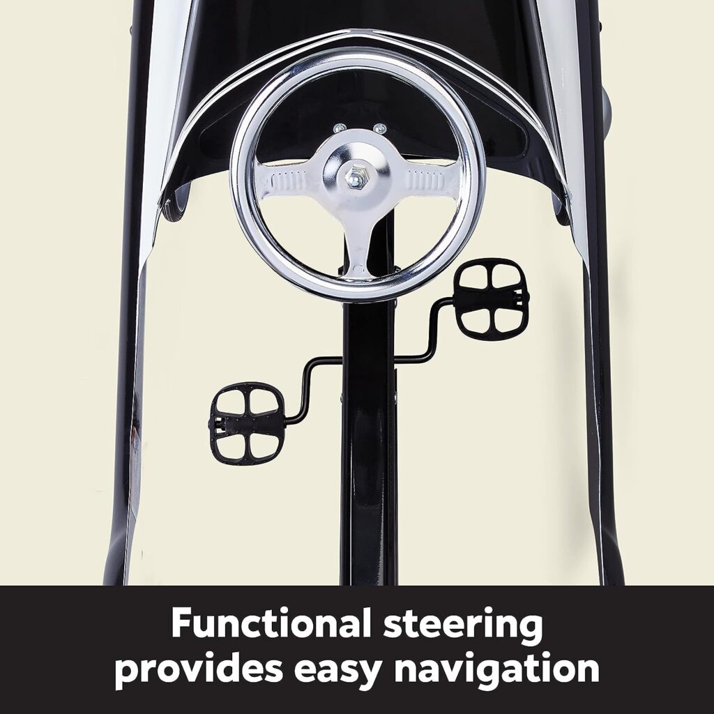 Furthermore, this pedal car is made with durable steel construction, ensuring its longevity and resistance to wear and tear. You can trust that this product can handle the rough play and adventures that come with being a toddler. The rubber tires with chrome hub caps not only provide a comfortable ride but also add a touch of classic cool style. The functional steering makes it easy for your child to navigate their little police car around the neighborhood or driveway with ease. Complete with vintage police car detailing, this pedal car offers a retro look that will delight both kids and adults alike.