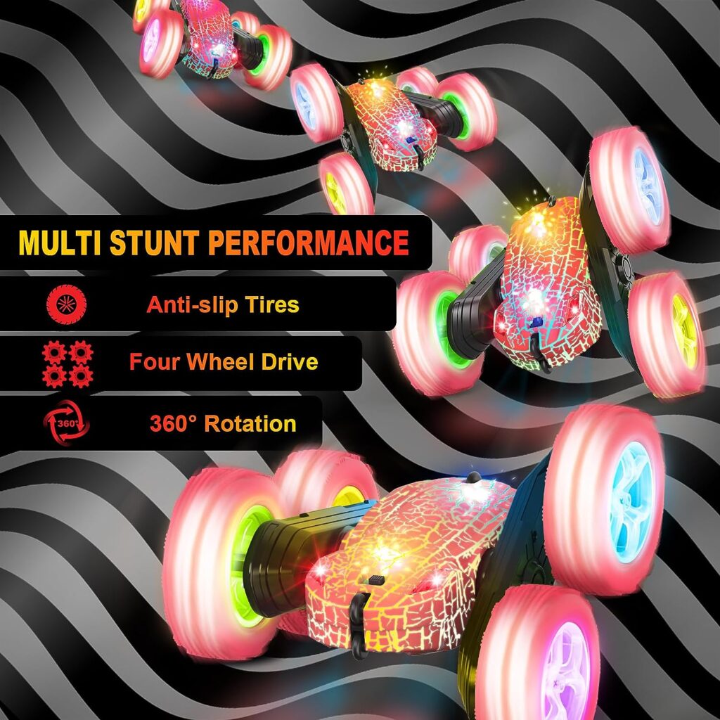 Get ready for endless fun and excitement with the OrrenteRemote RC Cars! Perfect for 6-year-old boys and girls, this double-sided remote control truck is equipped with impressive features that will surely captivate their imagination. With the ability to perform 360 flips and stunts, this 4WD RC car guarantees a thrilling driving experience. Its unique textured cracked design, cool headlights, and wheel lights add to its appeal, making it a super cool toy for kids. The included rechargeable batteries ensure a longer playtime, while the 2.4GHz anti-interference control allows for multiple cars to race together. Whether indoors or outdoors, on grasslands or sandy beaches, this RC car is built for adventure. So, get ready to surprise your little racing car lover with the ideal gift that promises endless fun and excitement!